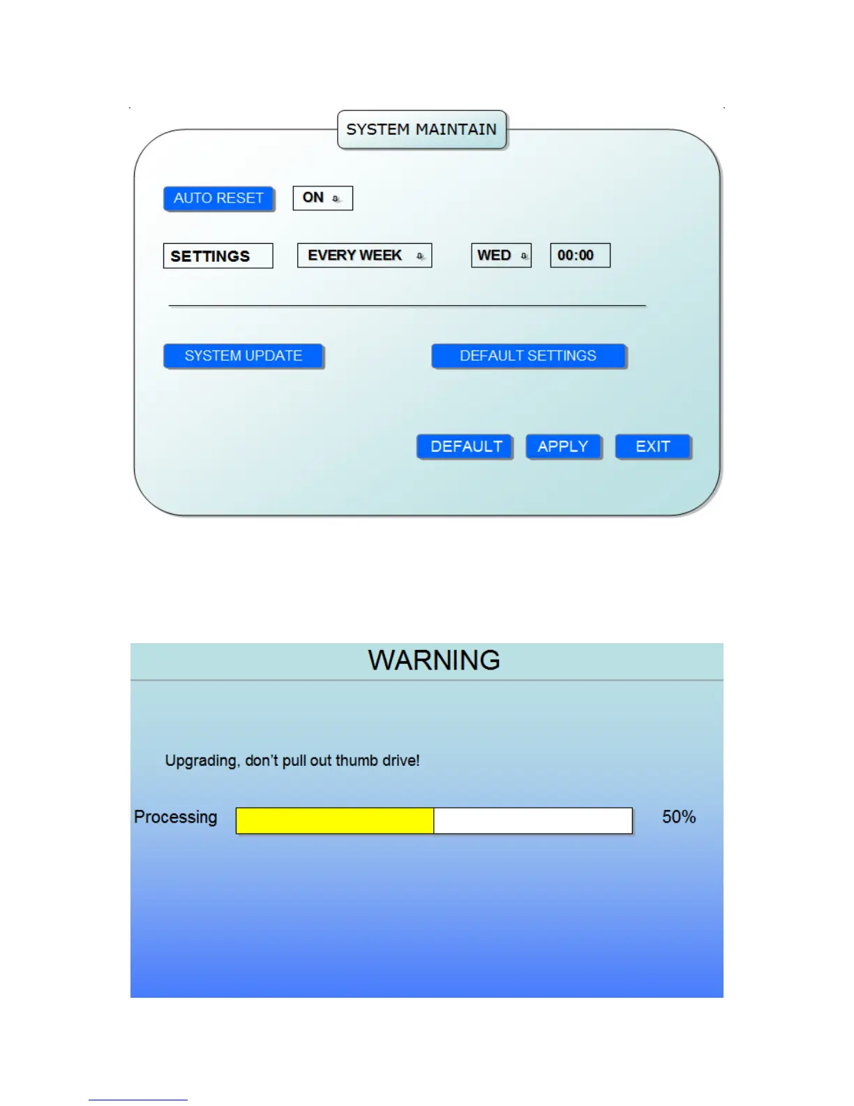 SYSTEM UPDATE: Copy the update file to the root directory of the thumb driver, and insert