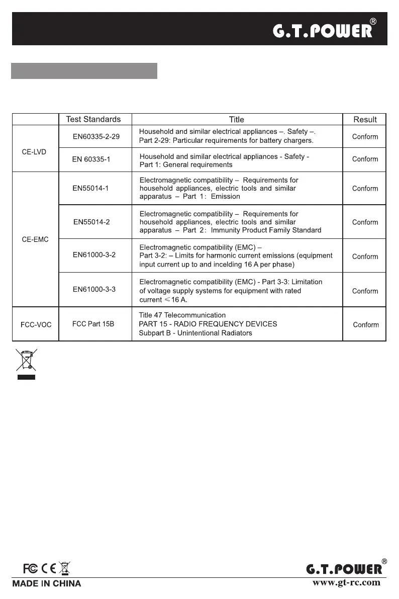 G.T.POWER A3 satisfies all relevant and mandatory CE directives and FCC Part 15 Subpart B.