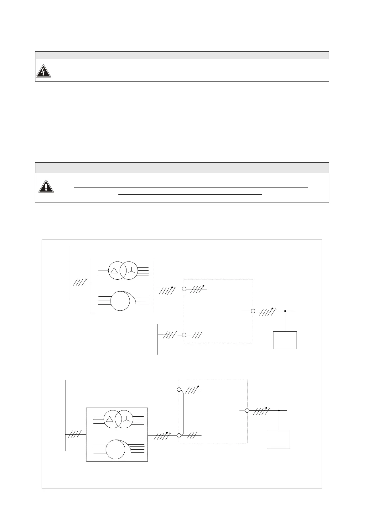 The transformer must be inserted either on the mains supply line or on the by-pass line (as shown in the drawings).