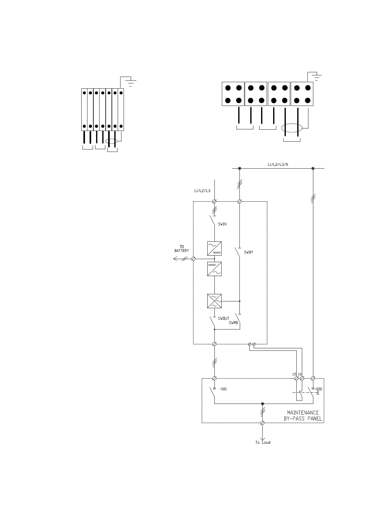 B = connection to external bypass UPS switch