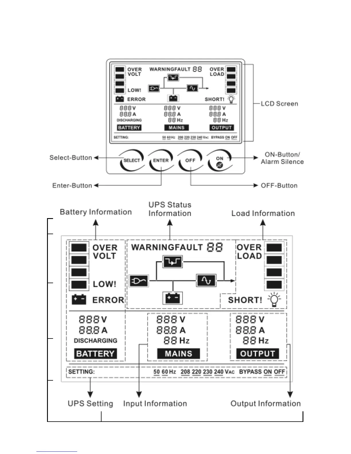 By-pass premendo il pulsante “OFF”, e l’inverter è disattivo.