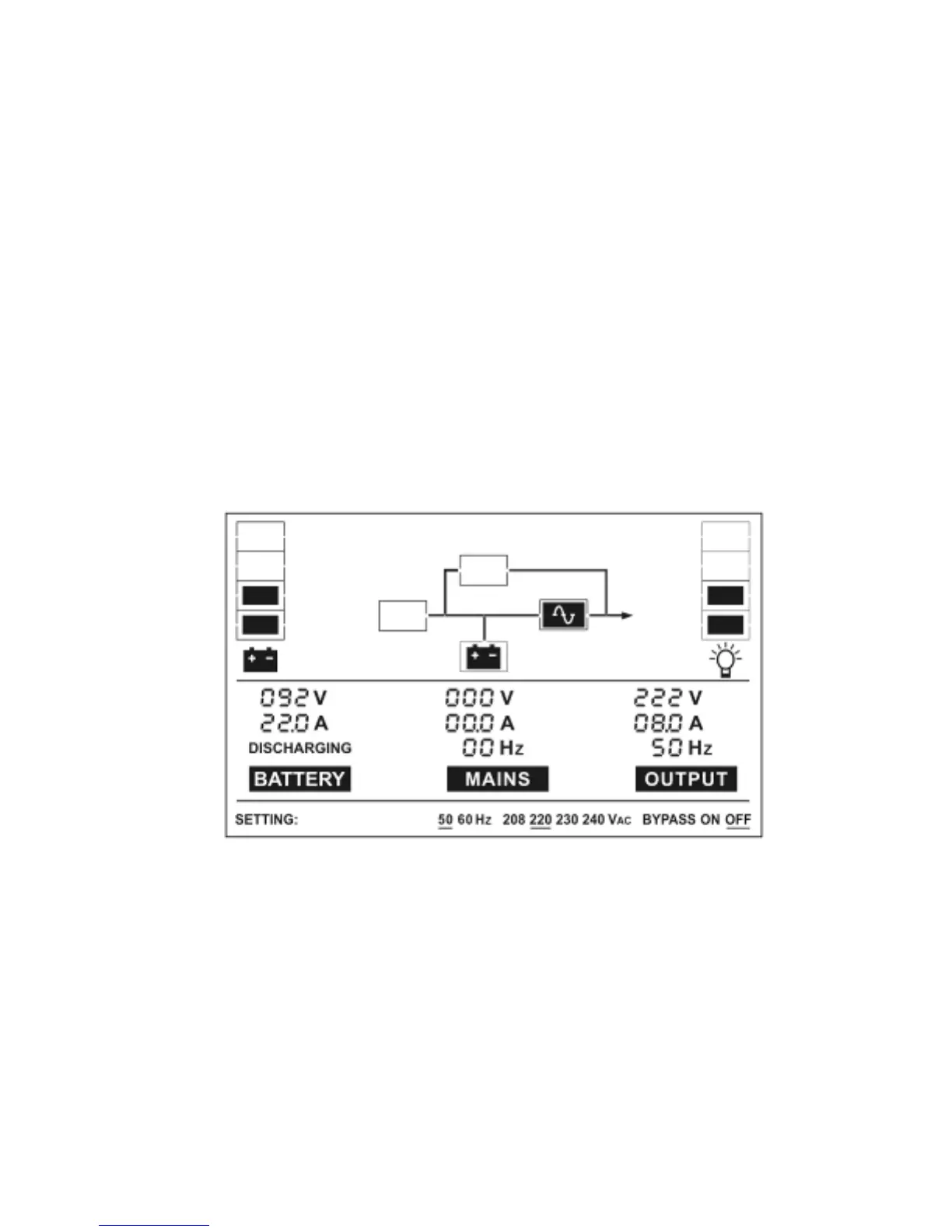 Il display LCD in modalità By-pass è mostrato nel diagramma