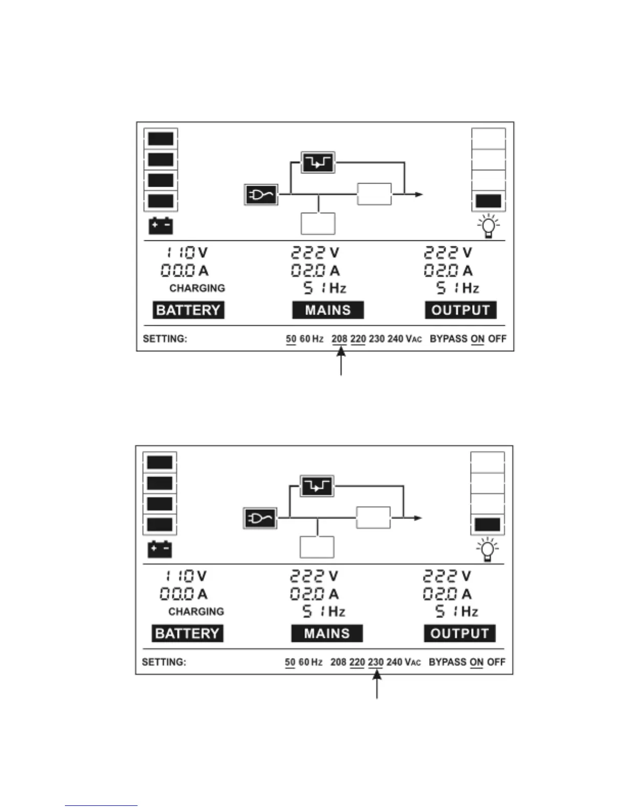 Premere il pulsante “Select”: sotto la scritta 208V apparirà
