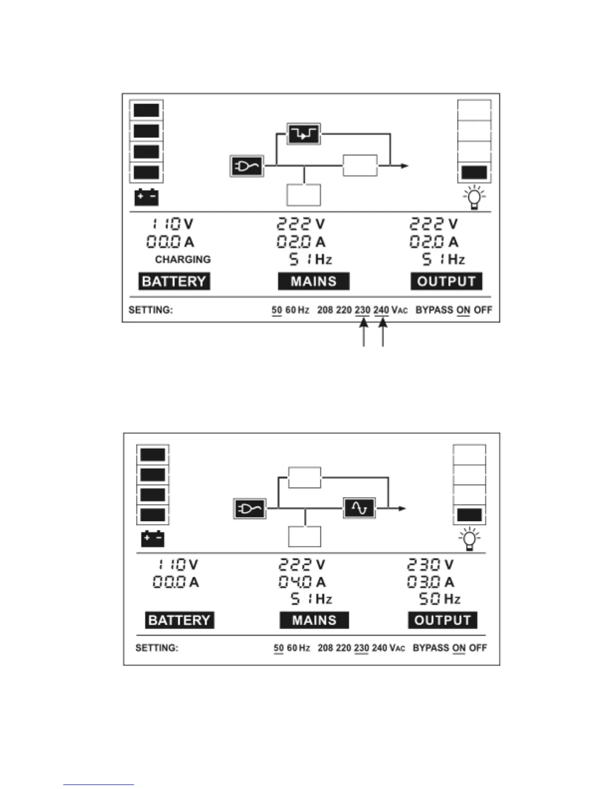 Premere il pulsante “Enter” la linea sotto230Vac” smette di