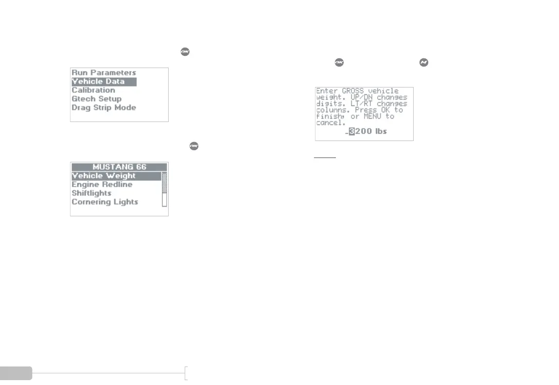 Select “Vehicle Weight” and press .