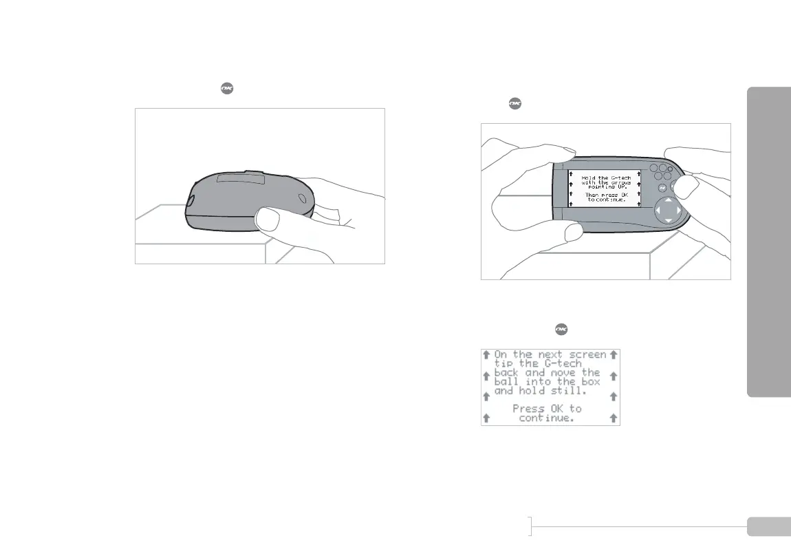 Orient the G-tech as shown, read the screen, and