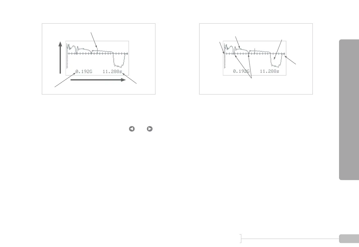 • Each tic mark on the vertical axis marks 0.1G of acceler-