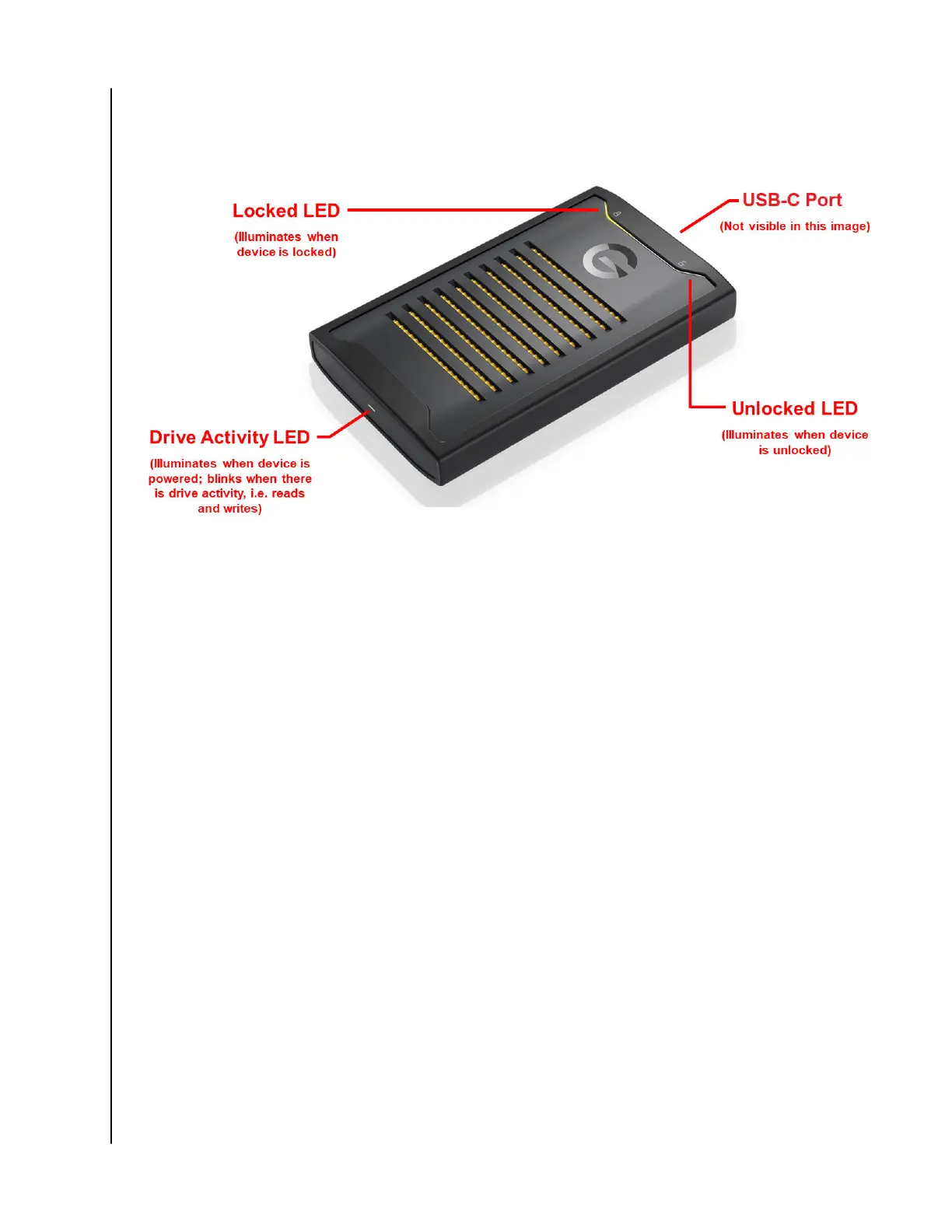 The image below illustrates the location, color, and status of the LEDs, and the location