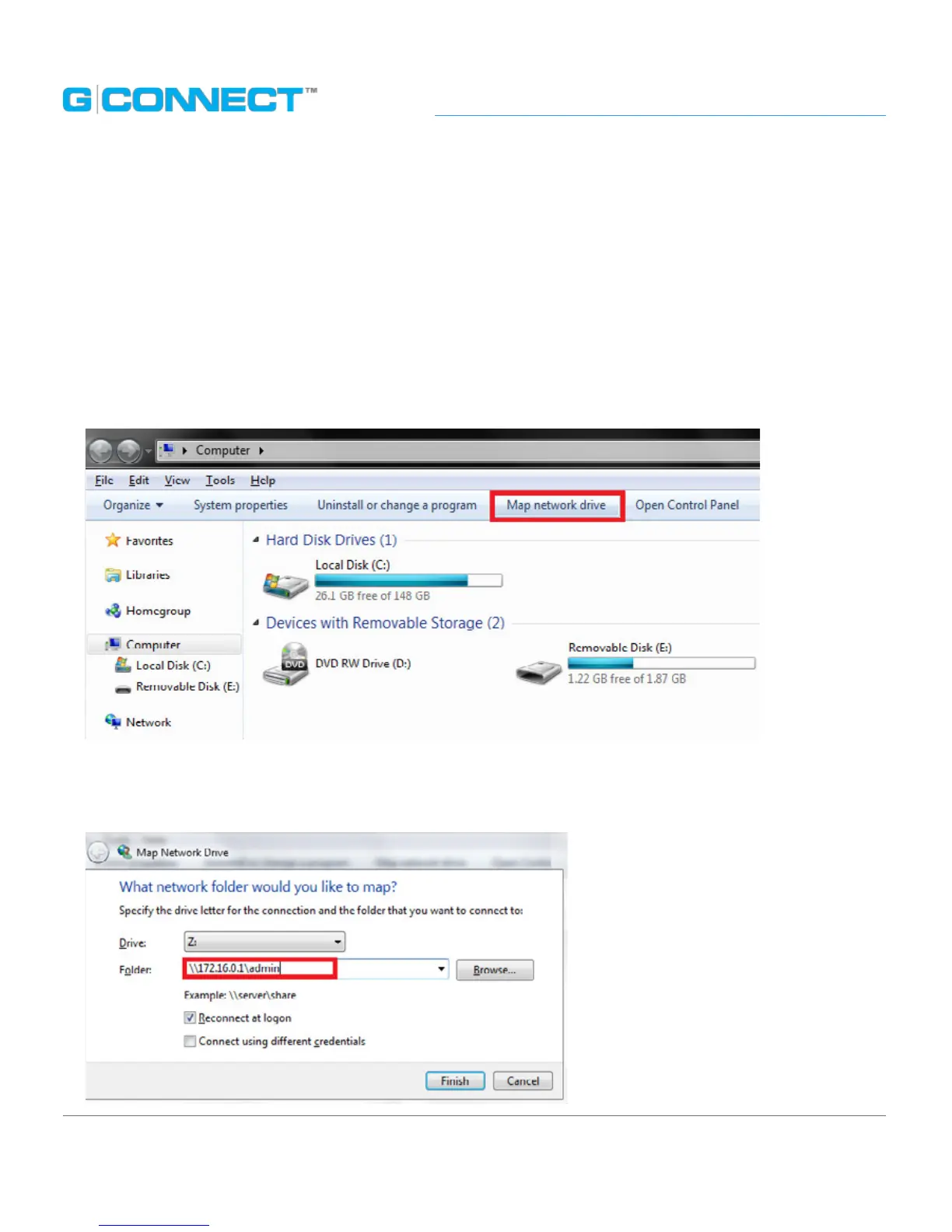 would use to connect through the Web Application: \\172.16.0.1\admin