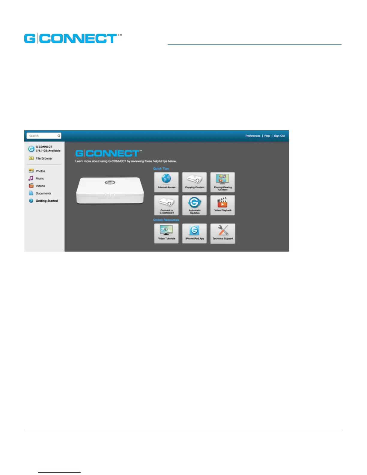 G-CONNECT device. The URL to this page is g-technology.com/support/g-connect.