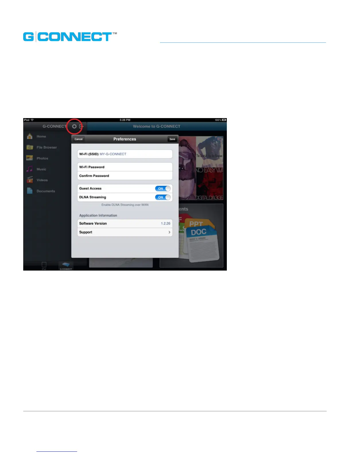 • Support: Links to the G-CONNECT Support Page. *Requires an Internet connection.