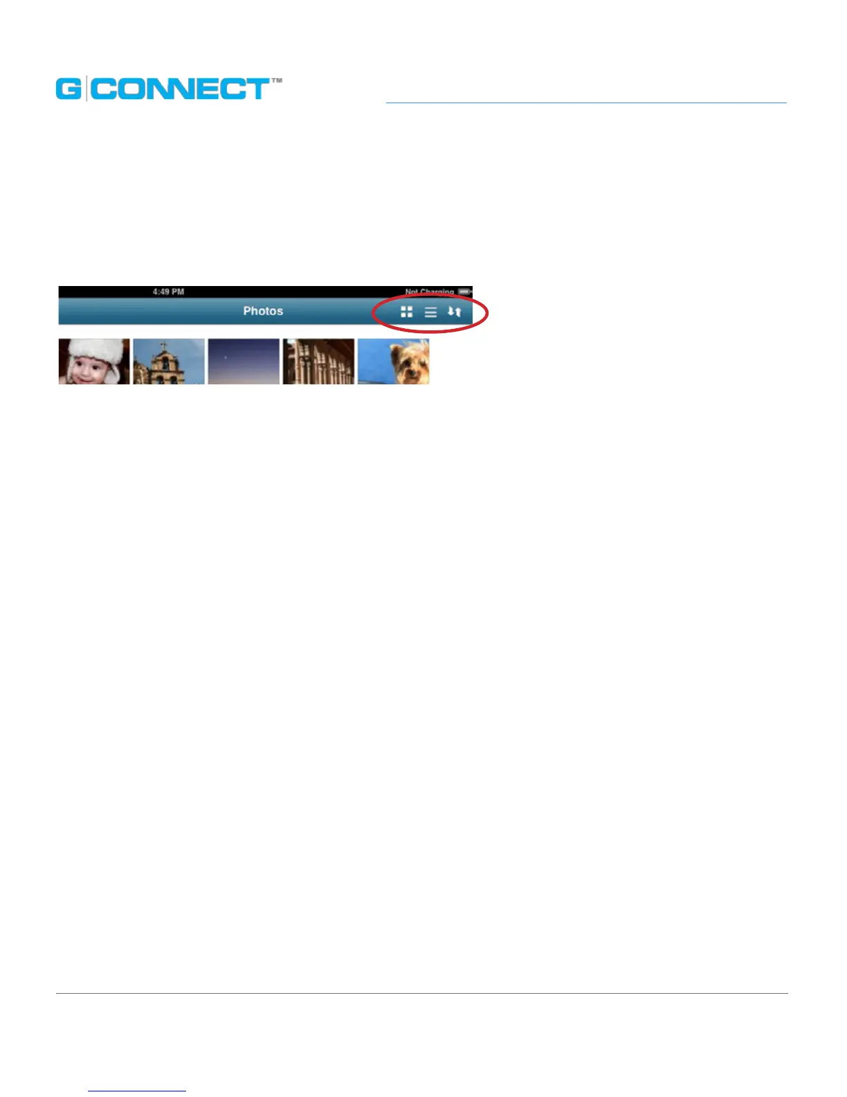 Ability to sort content on the G-CONNECT device by File Name, Date Modied, File Size
