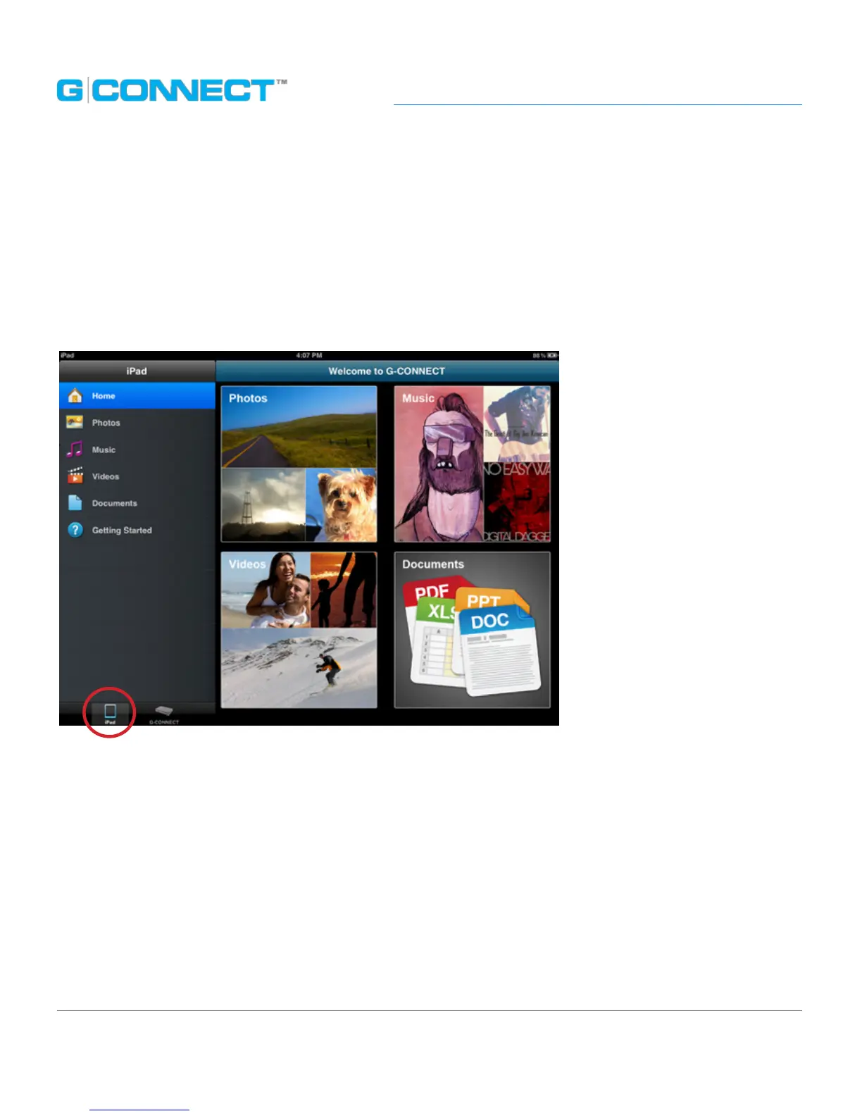 the G-CONNECT iPad application.