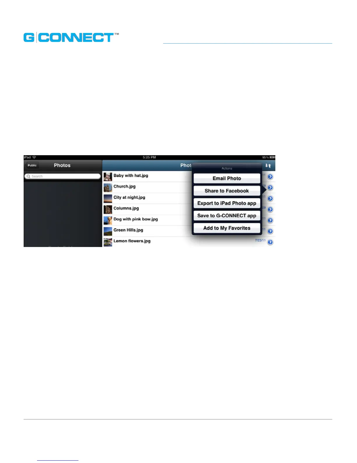 Menu for that le. Within the Actions Menu is an option for ‘Save to G-CONNECT app’ in