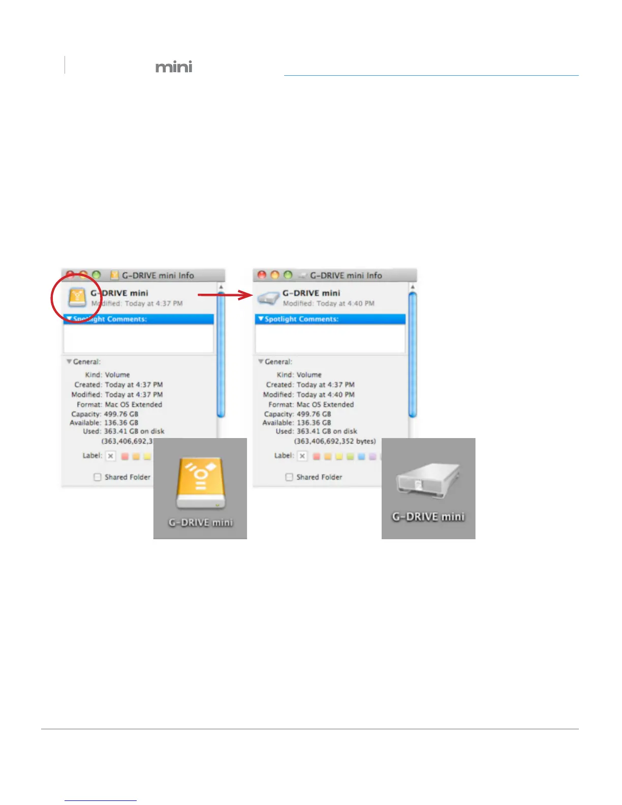 The icon for your G-DRIVE mini has been restored and you can close the Get Info