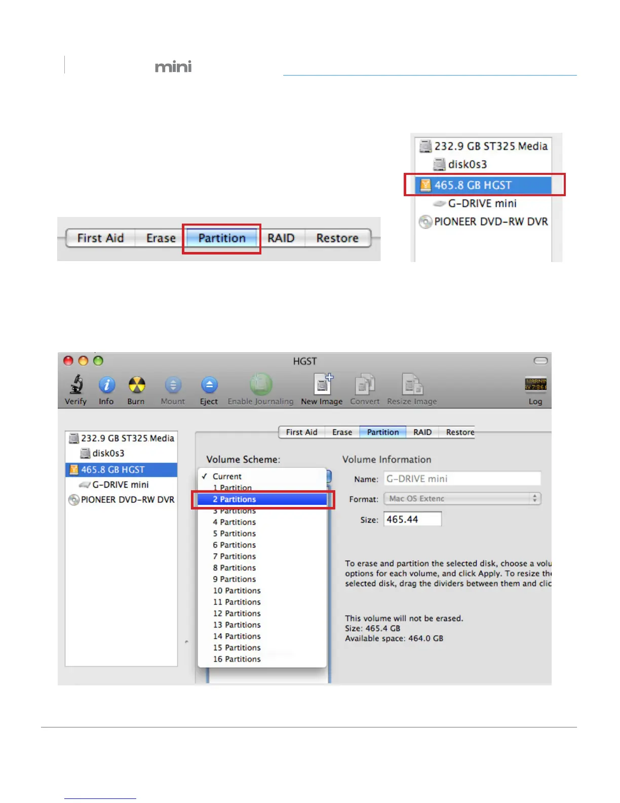 4. Select the number of partitions you would like from the Volume Scheme menu.
