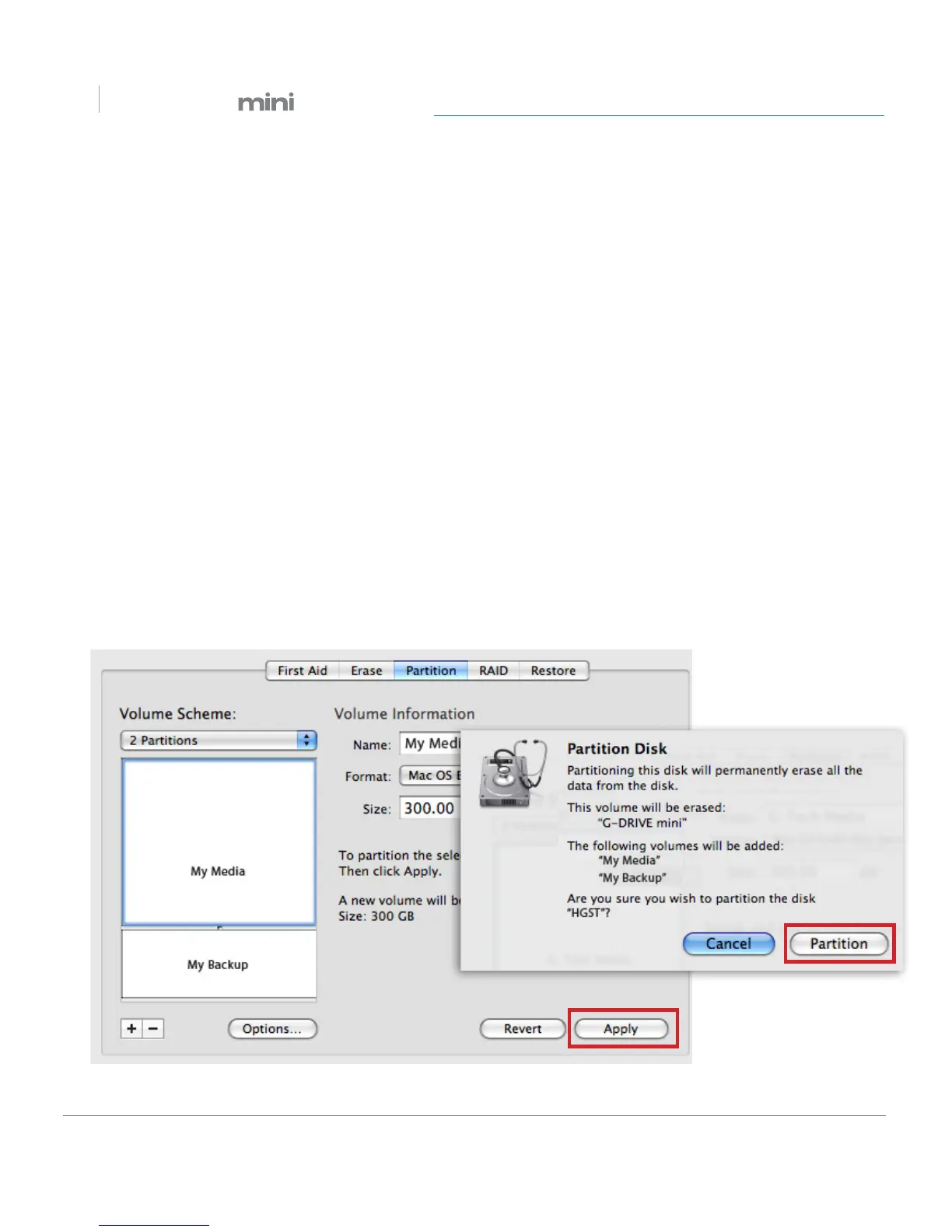 asking if you want to erase the G-Technology drive partition.