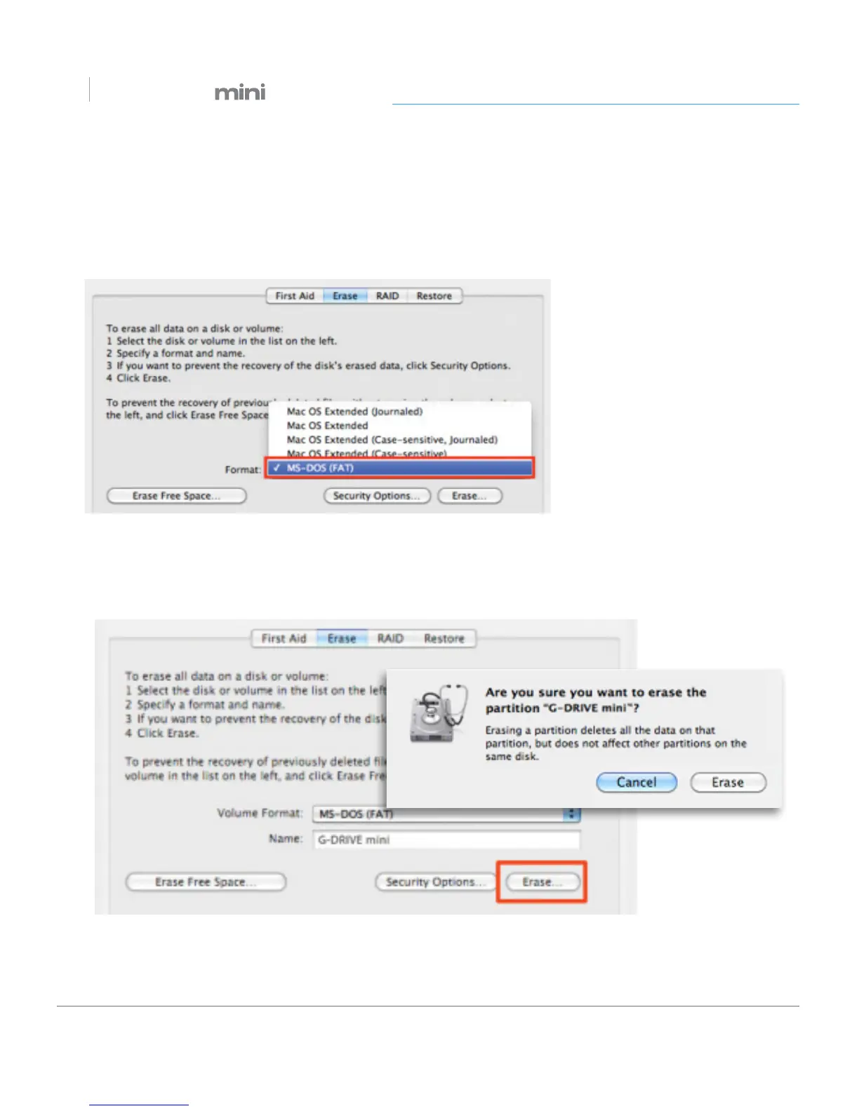 5. Click the Erase button in the lower right corner of the window. A dialog box will