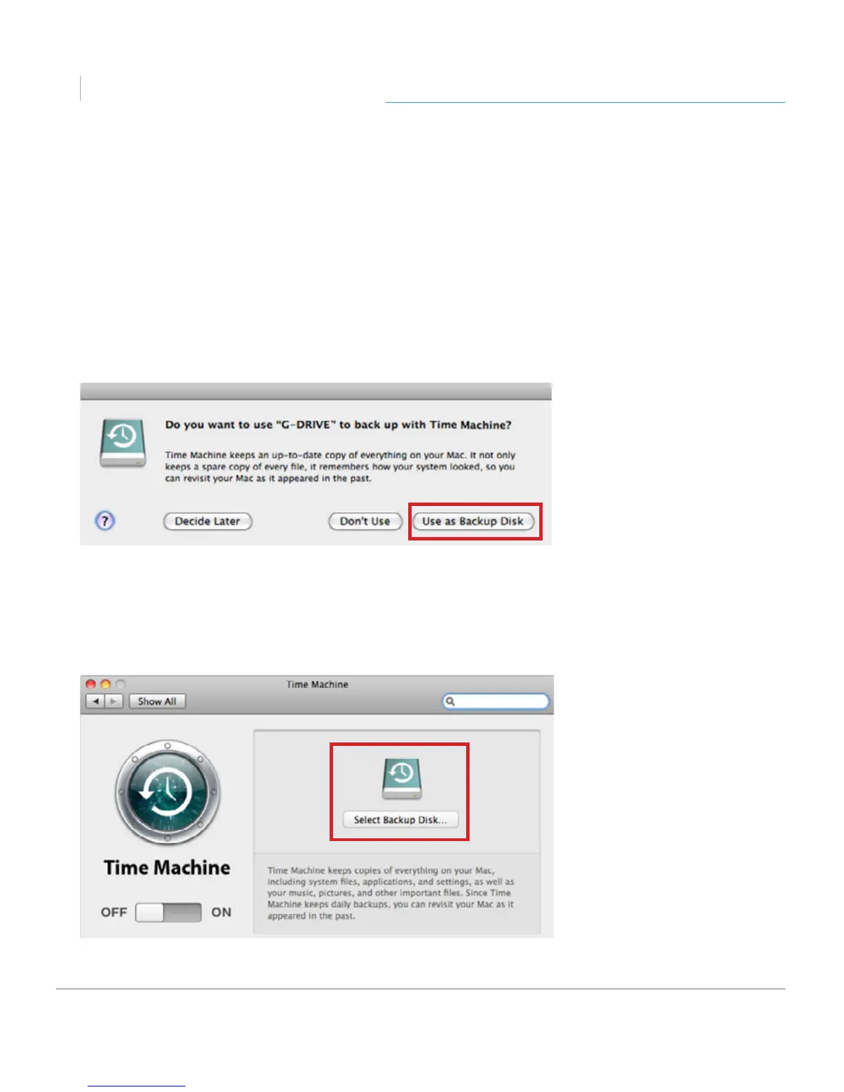 1. When you attach G-DRIVE for the rst time, the Time Machine dialog box should