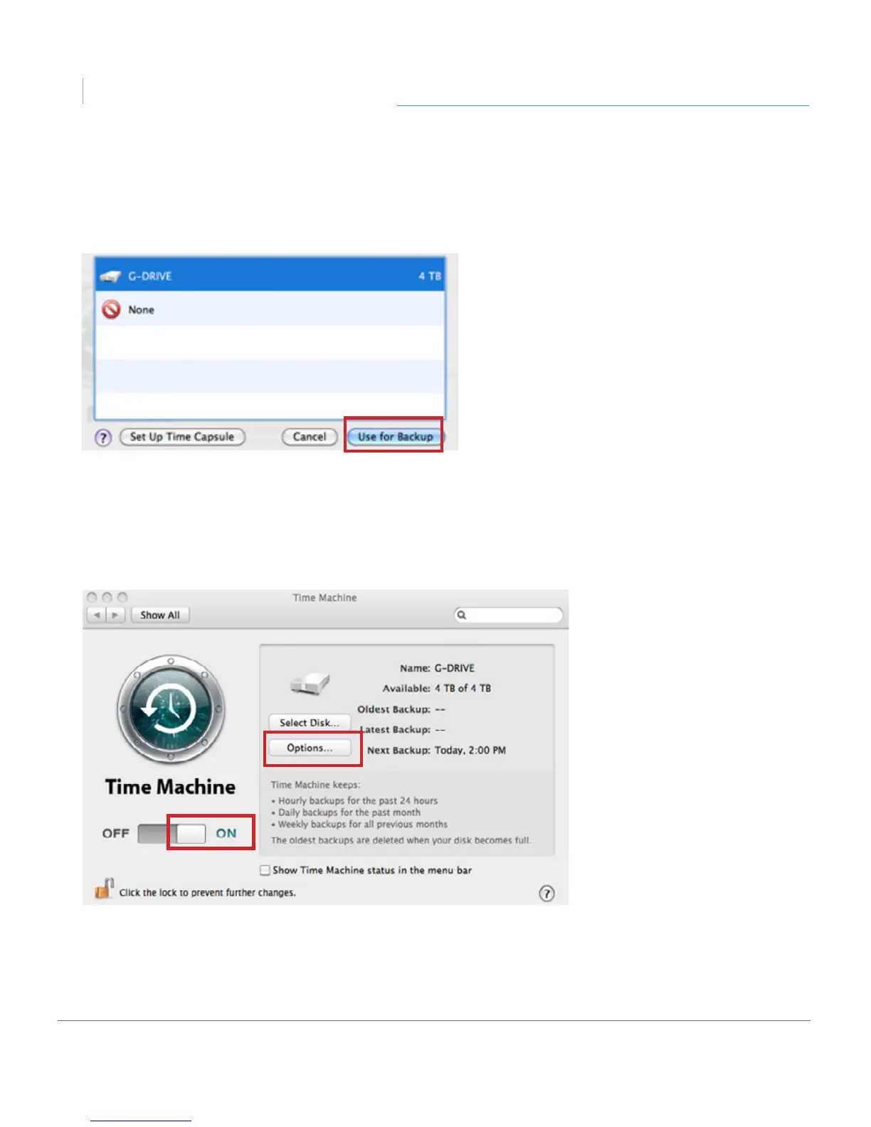 3. In the dialog box that appears, select the G-DRIVE. Click the Use for Backup button.