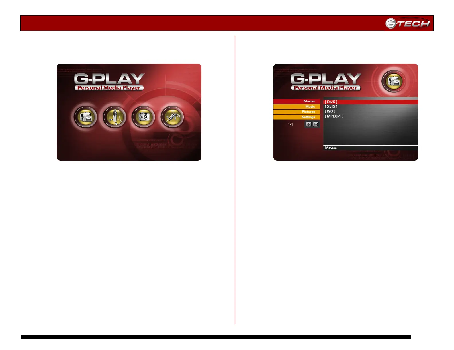 Movies Pictures Music Settings