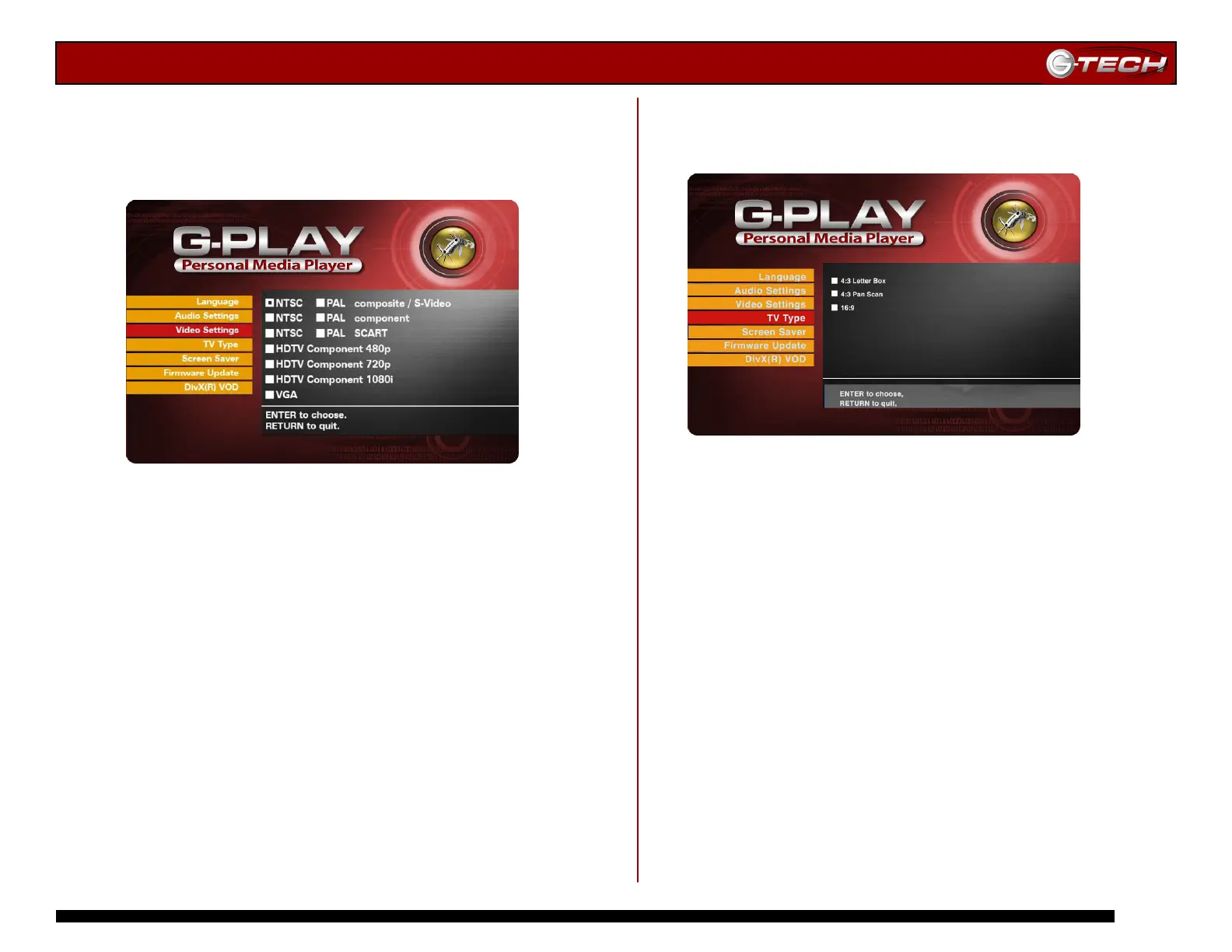 G-PLAY. Choose the appropriate setting for your TV.