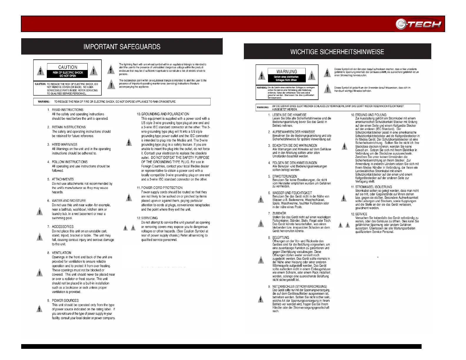 G-Technology G-Play - Important Safeguards; Read Instructions; Retain Instructions; Heed Warnings