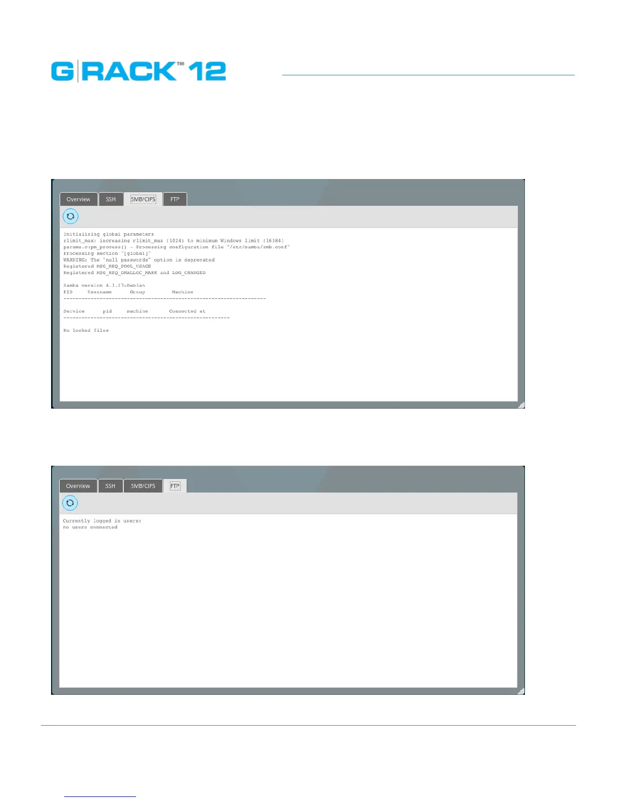 The menu shows additional information on SMB/CIFS status, currently logged in users and