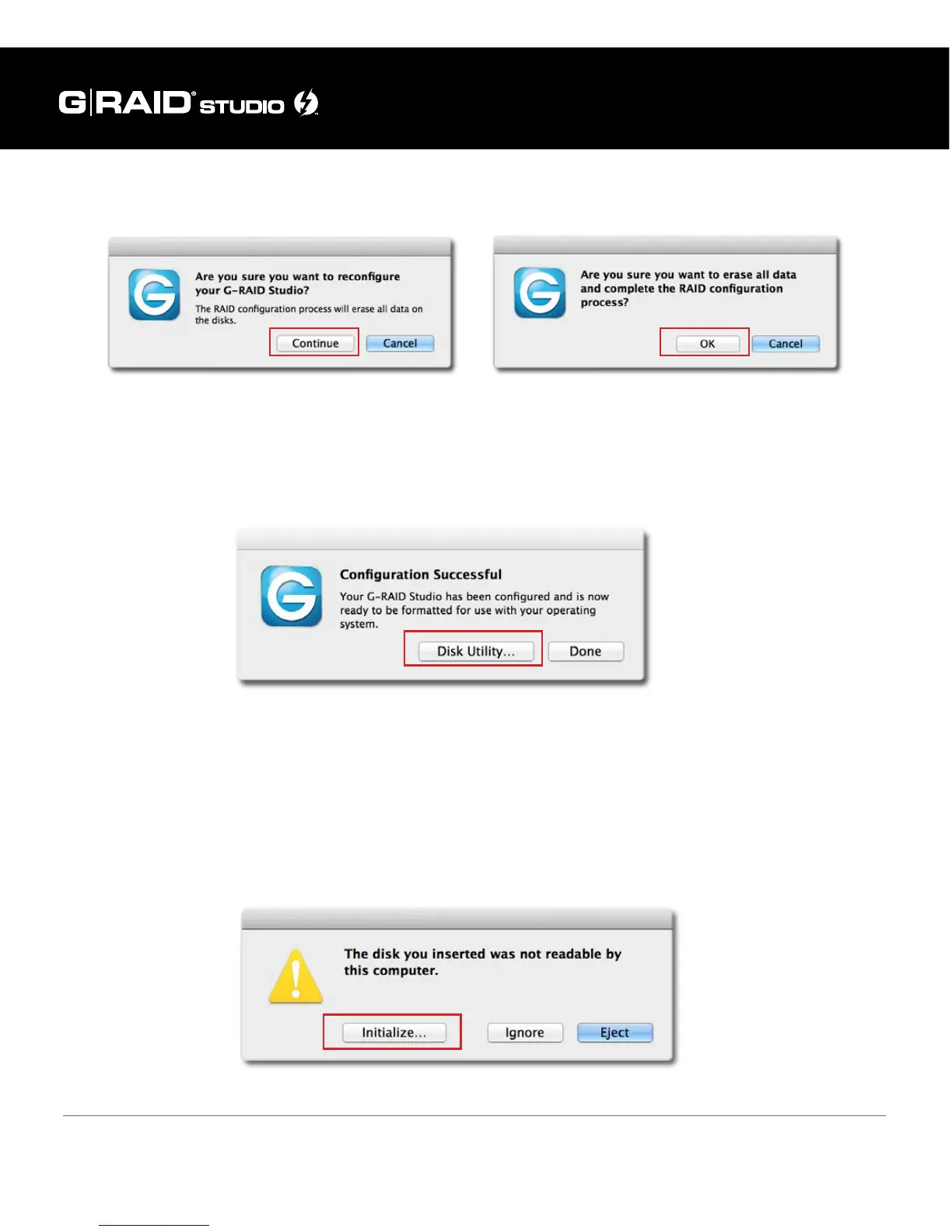 5. Changing the RAID mode of G-RAID Studio will require you to re-initialize the disk