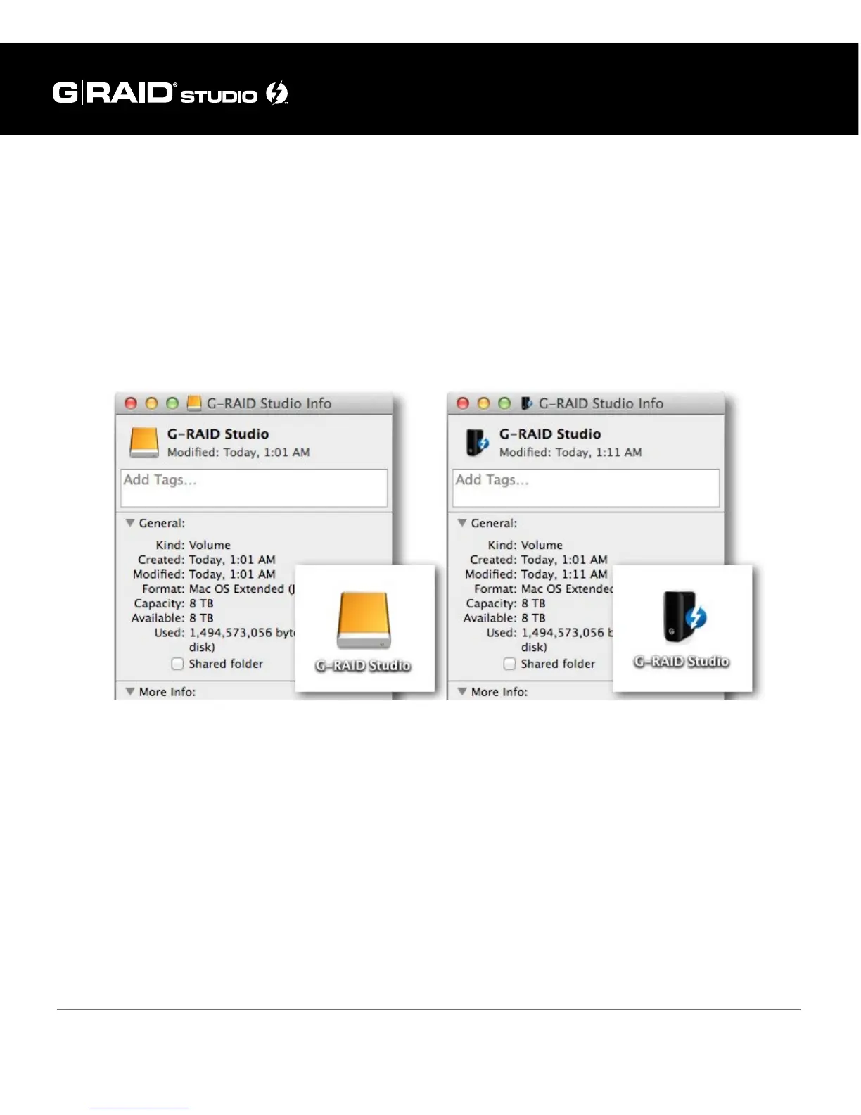The icon for your G-RAID Studio has been restored and you can close the Get Info