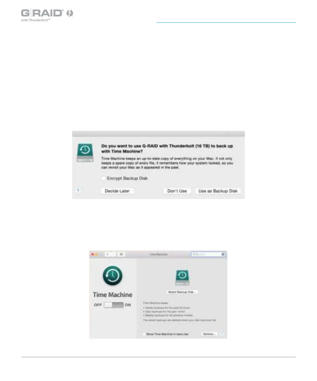 When you attach your G-RAID with Thunderbolt for the rst time, the Time Machine dialog box