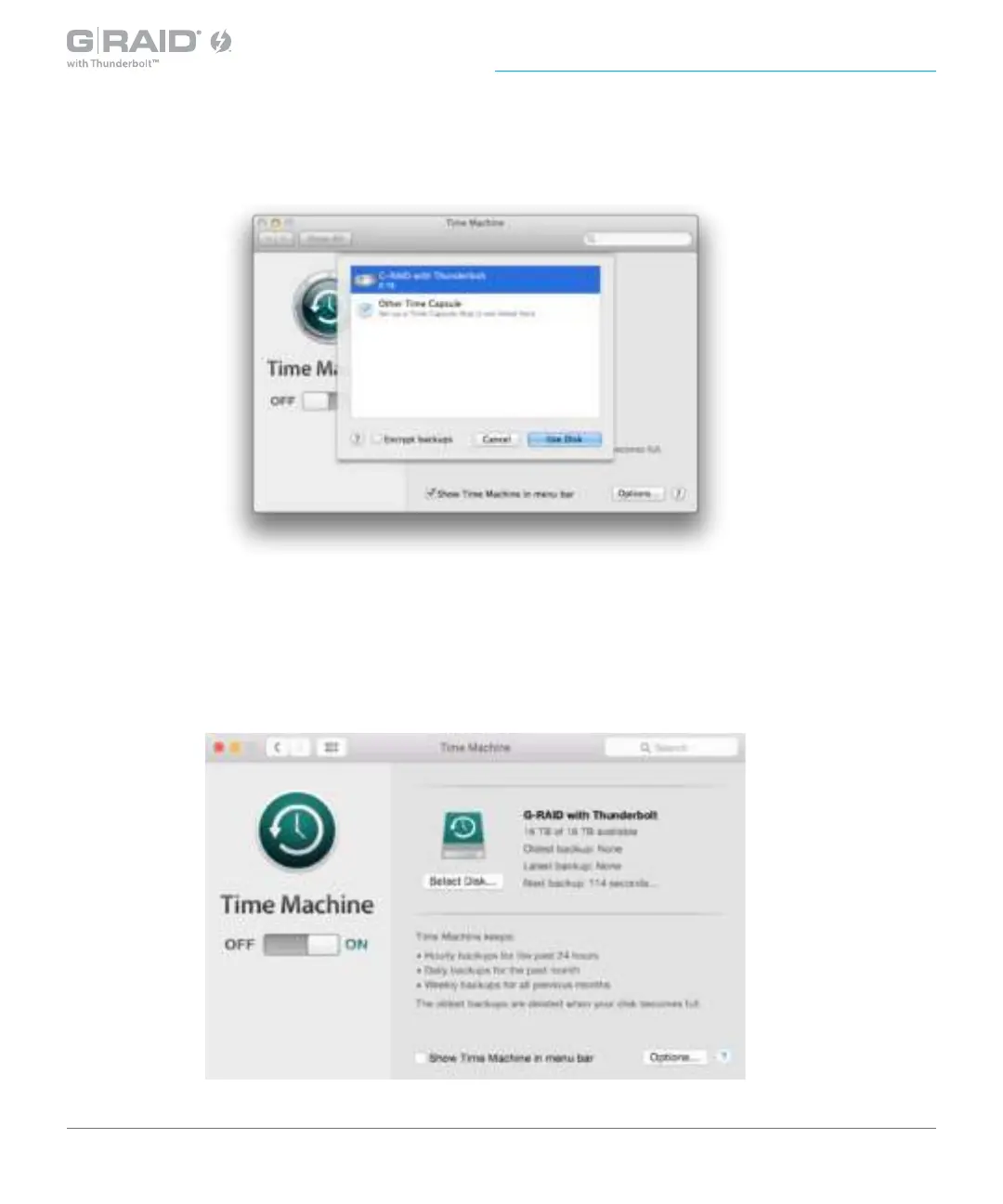 G-RAID with Thunderbolt will now backup your important les automatically with Time Machine.