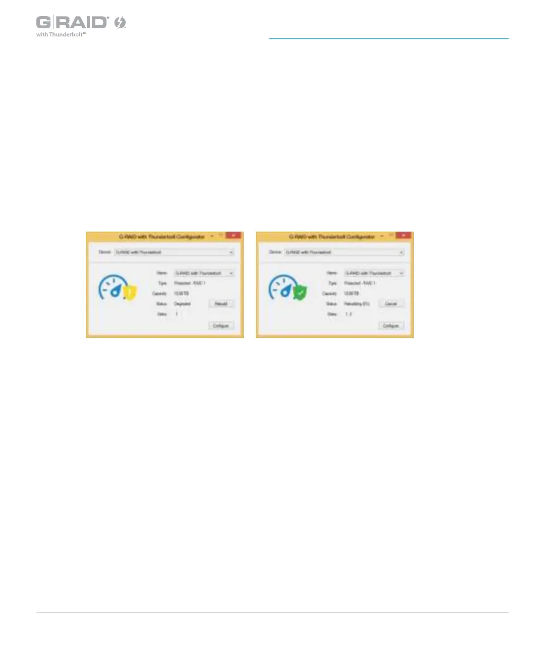 1. In the case of a degraded mode, if the G-RAID Conguration Utility is launched, then