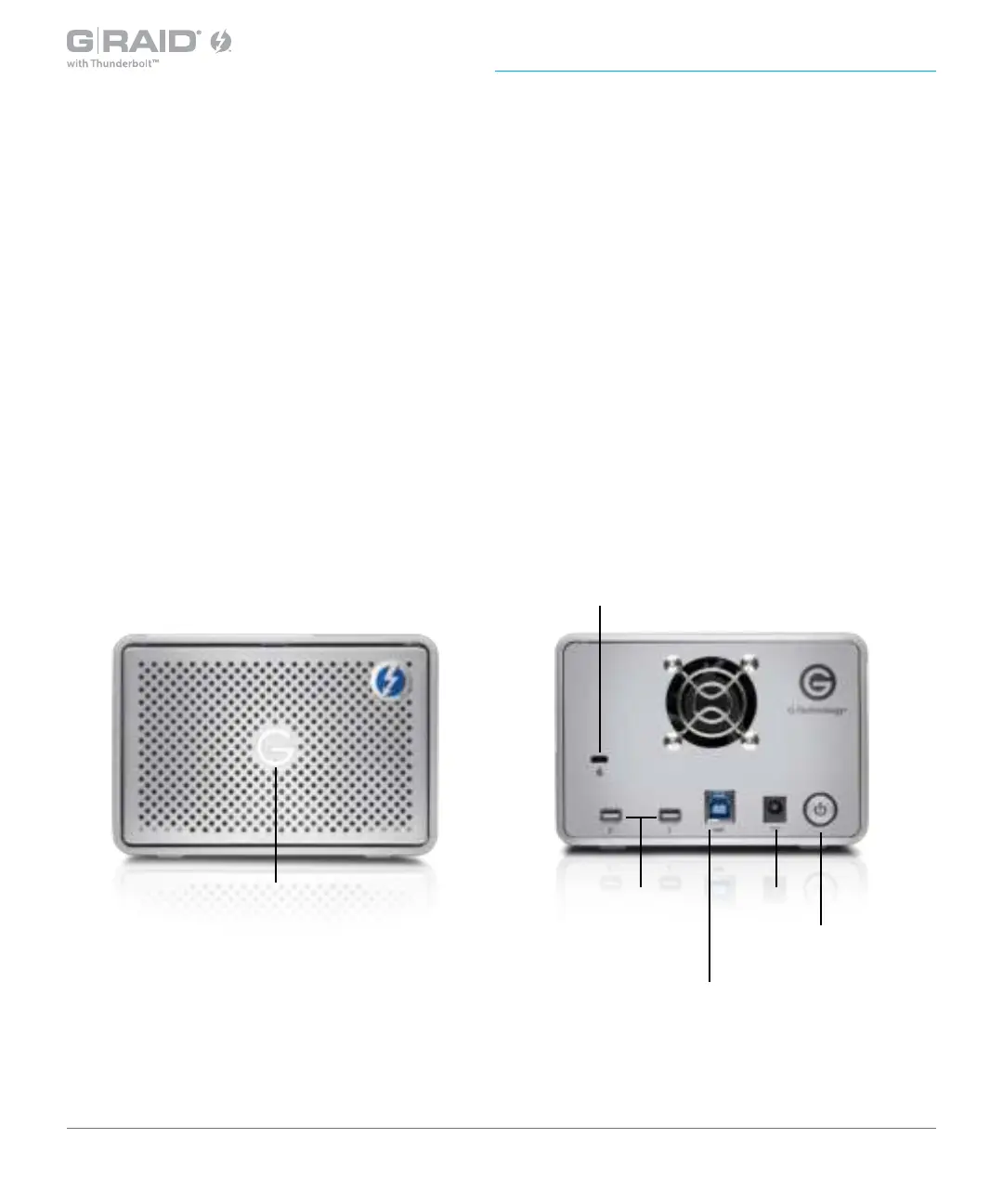 The following diagram shows the helpful features of your G-RAID with Thunderbolt.