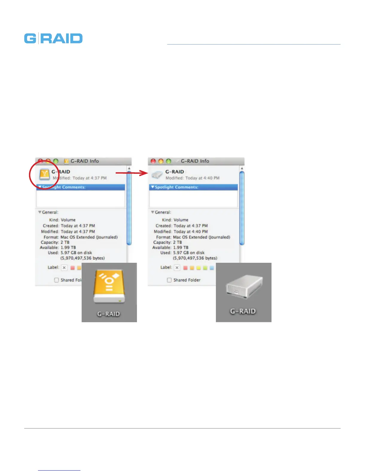 4. Select the default G-RAID drive icon on your desktop and press Command+I.