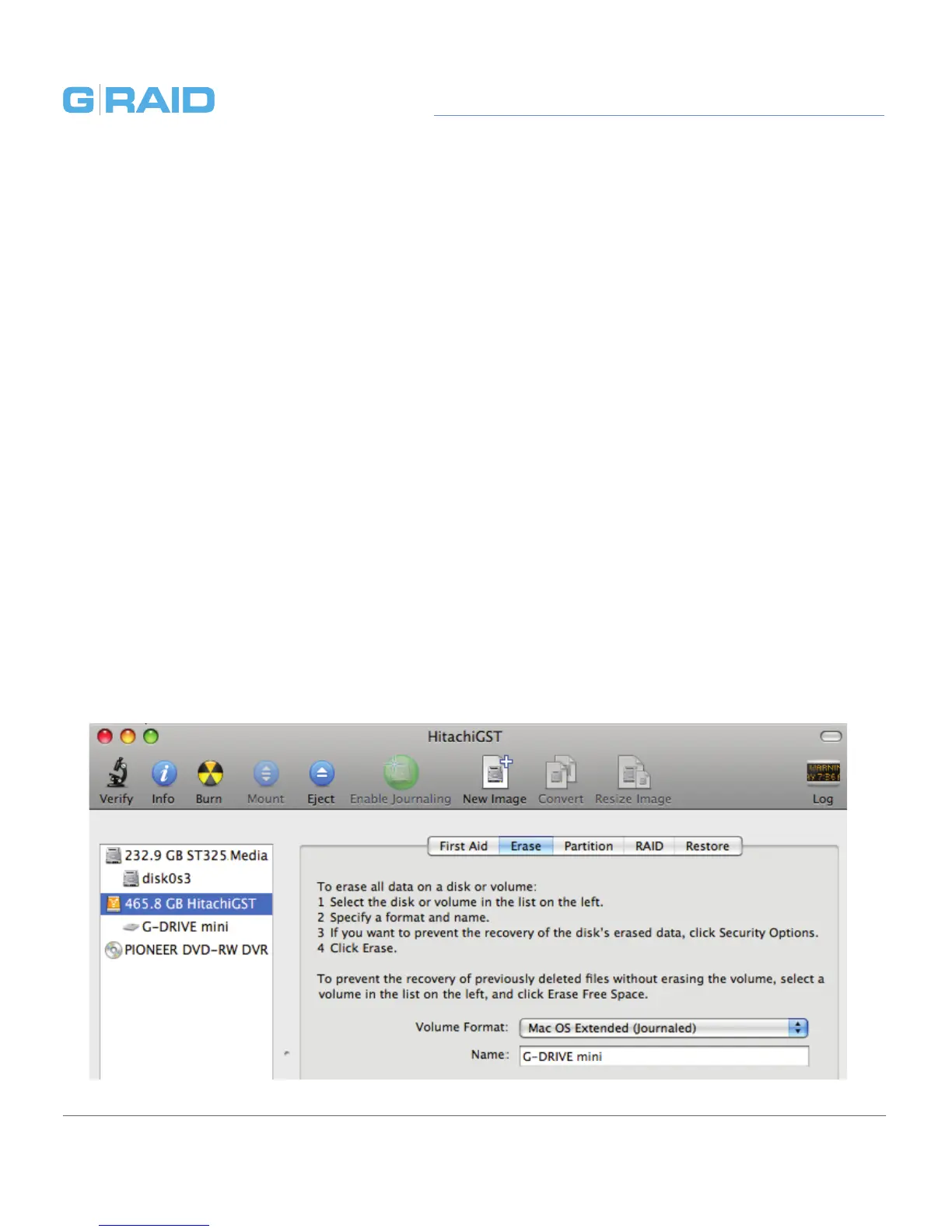 drive. In this example, we will partition a 500 GB G-DRIVE mini connected via