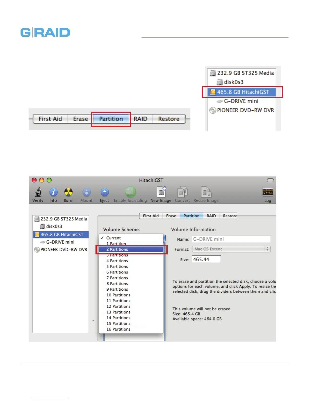 4. Select the number of partitions you would like from the Volume Scheme menu.
