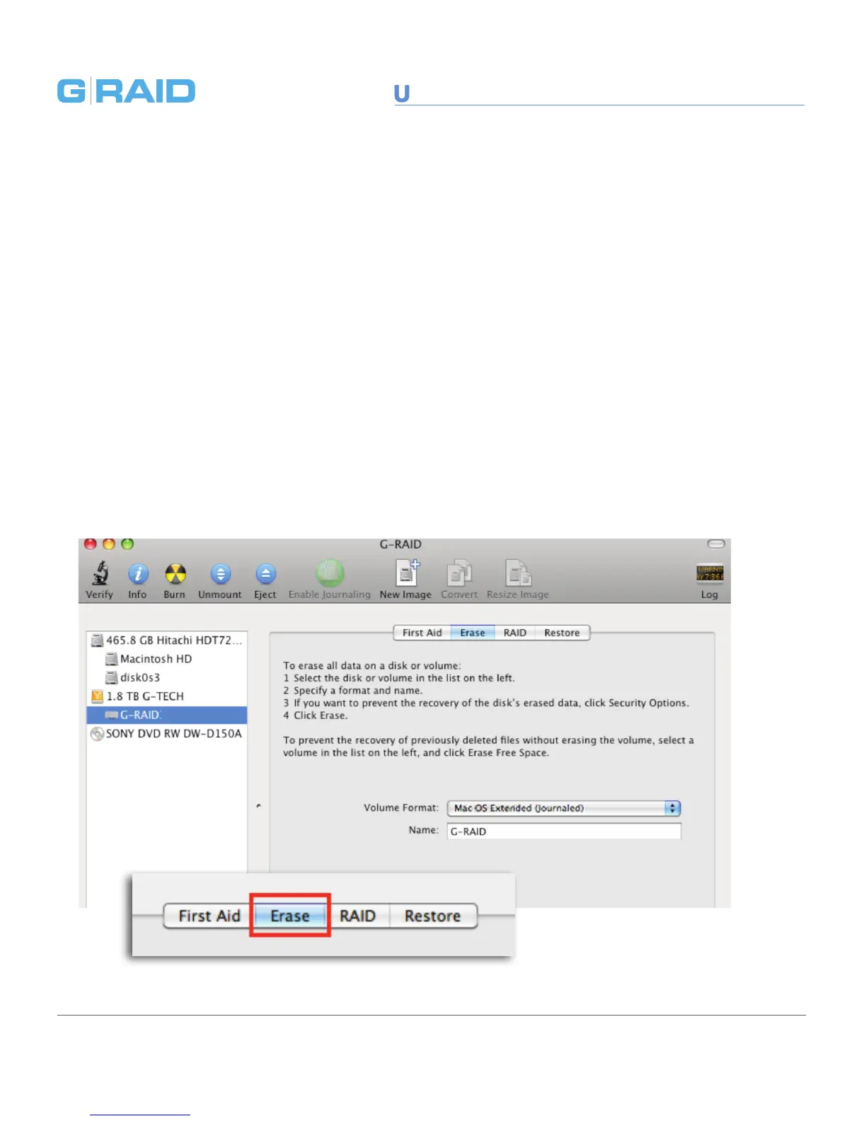 2. Select the G-RAID by clicking on its drive icon in the left-side column.