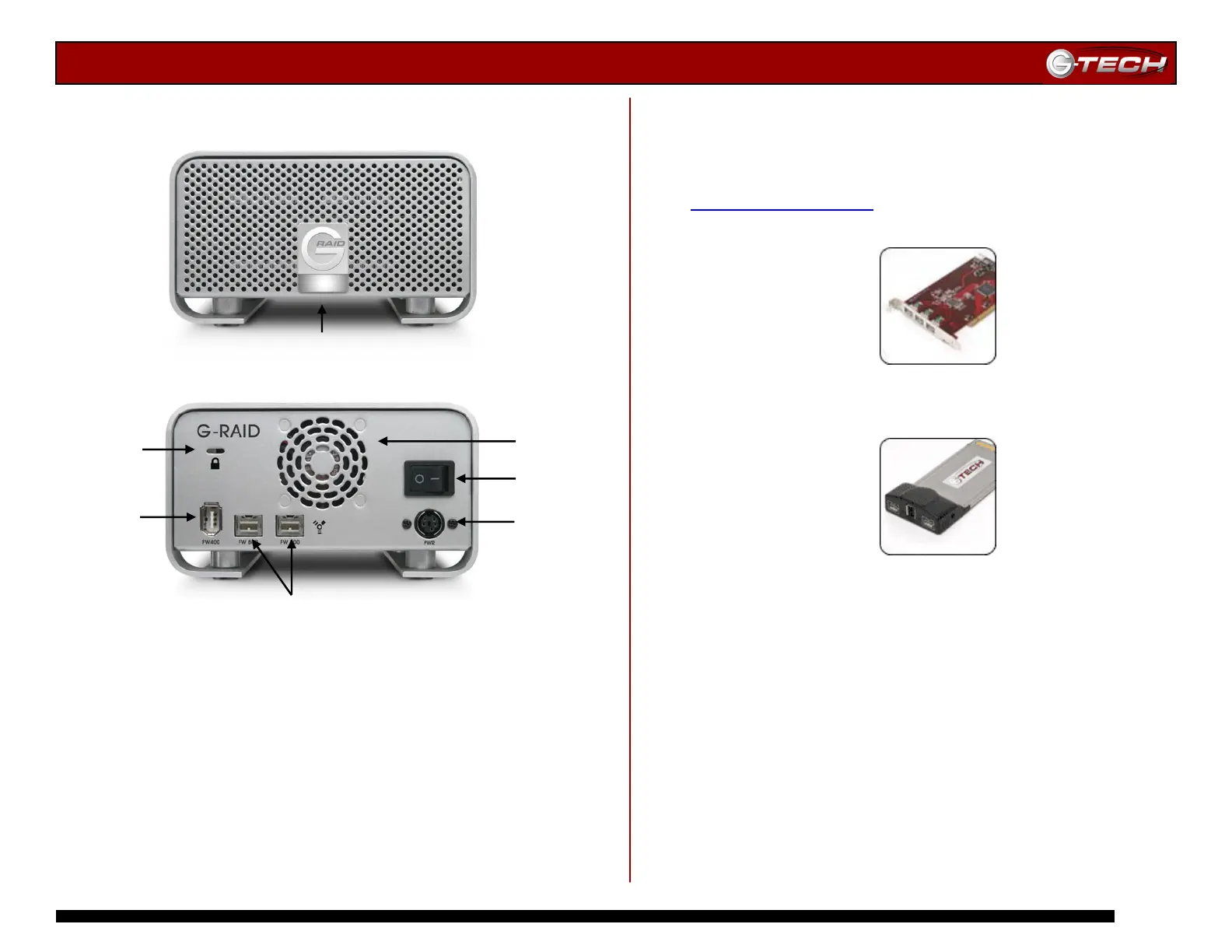 connect G-RAID to either the G-Tech FireWire 800 PCI adapter or FireWire