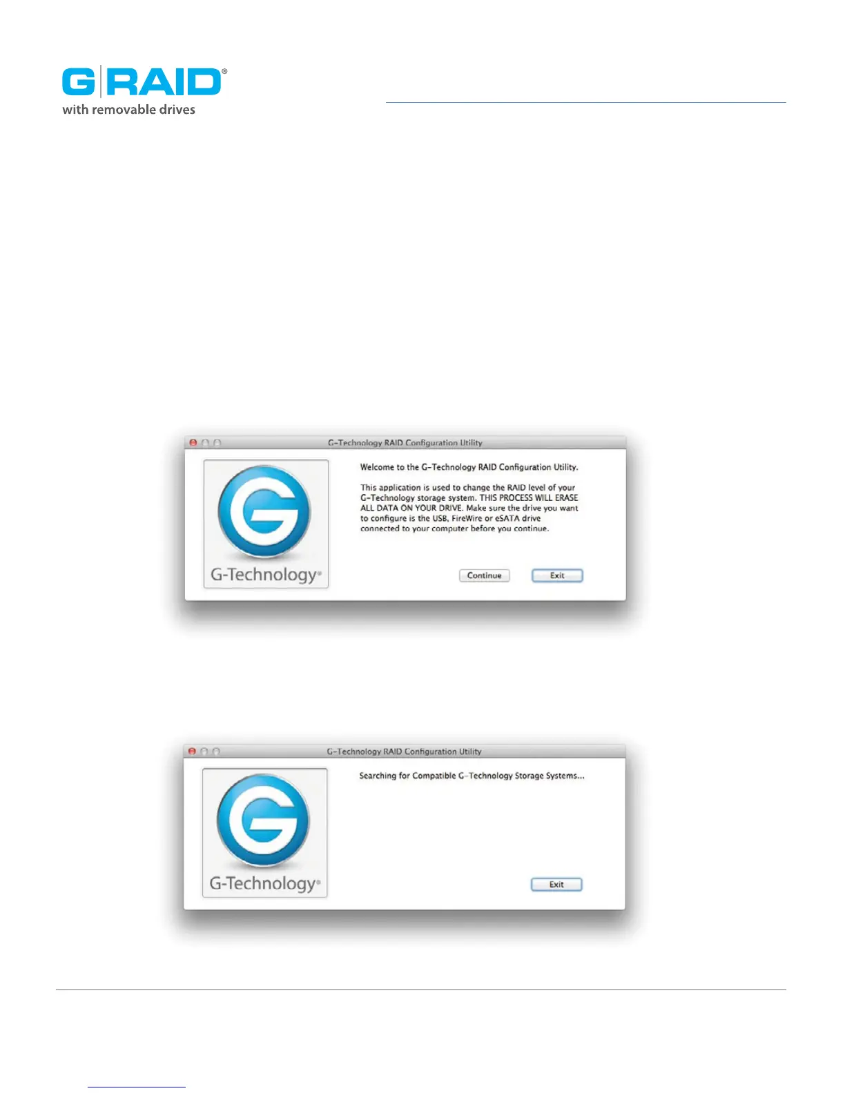 1. Launch the G-Technology RAID Configuration utility. A dialog window will ask you to