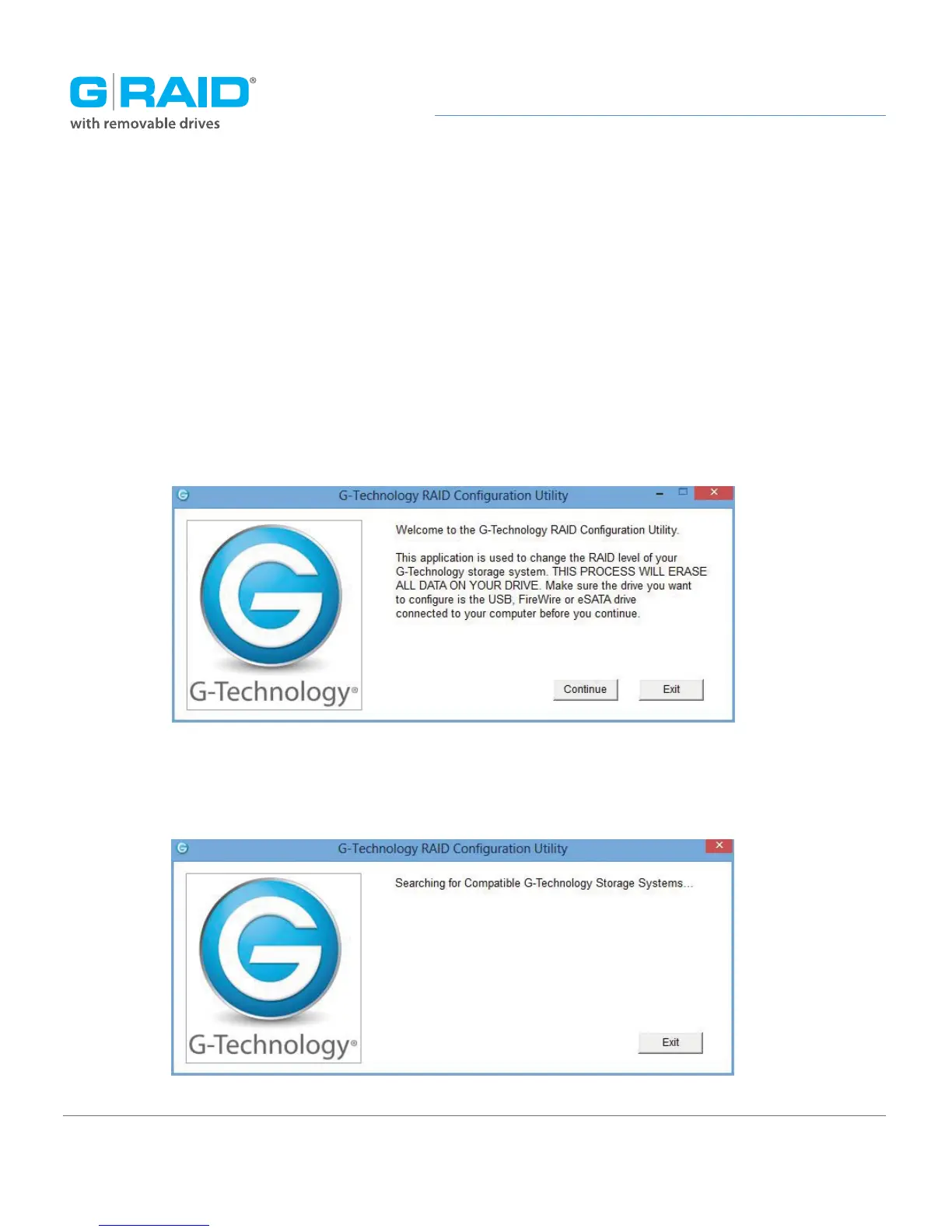 1. Launch the G-Technology RAID Configuration utility. A dialog window will ask you to