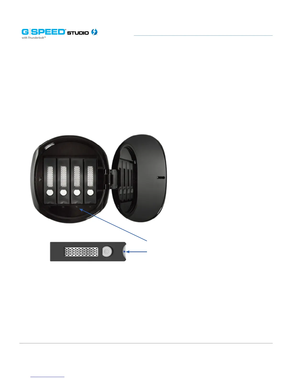 Under normal operation, each G-SPEED Studio R drive module has an LED that glows