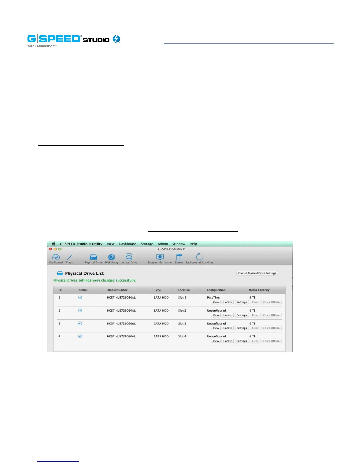 the G-SPEED Studio R Utility window or by clicking the Physical Drive menu link under