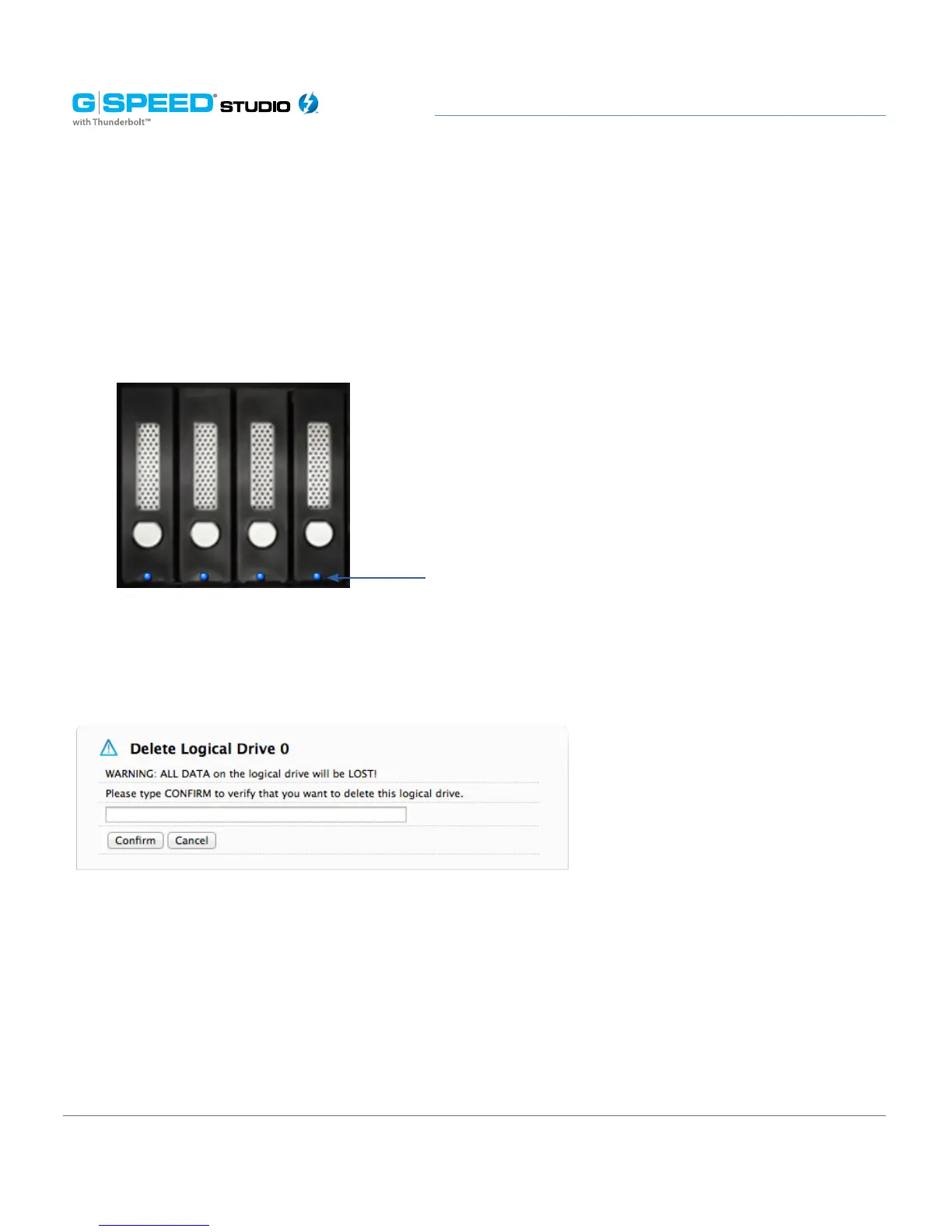 drive power/status LEDs for the physical drives that comprise the array will blink blue