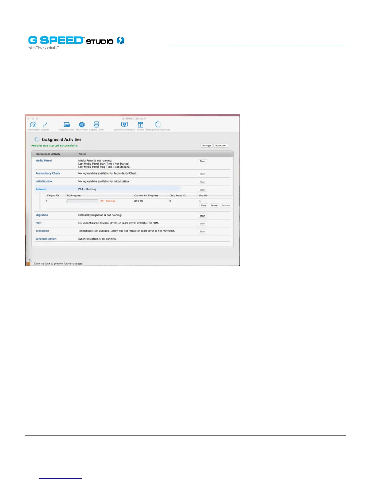 Conrm button. While the disk array is rebuilding: