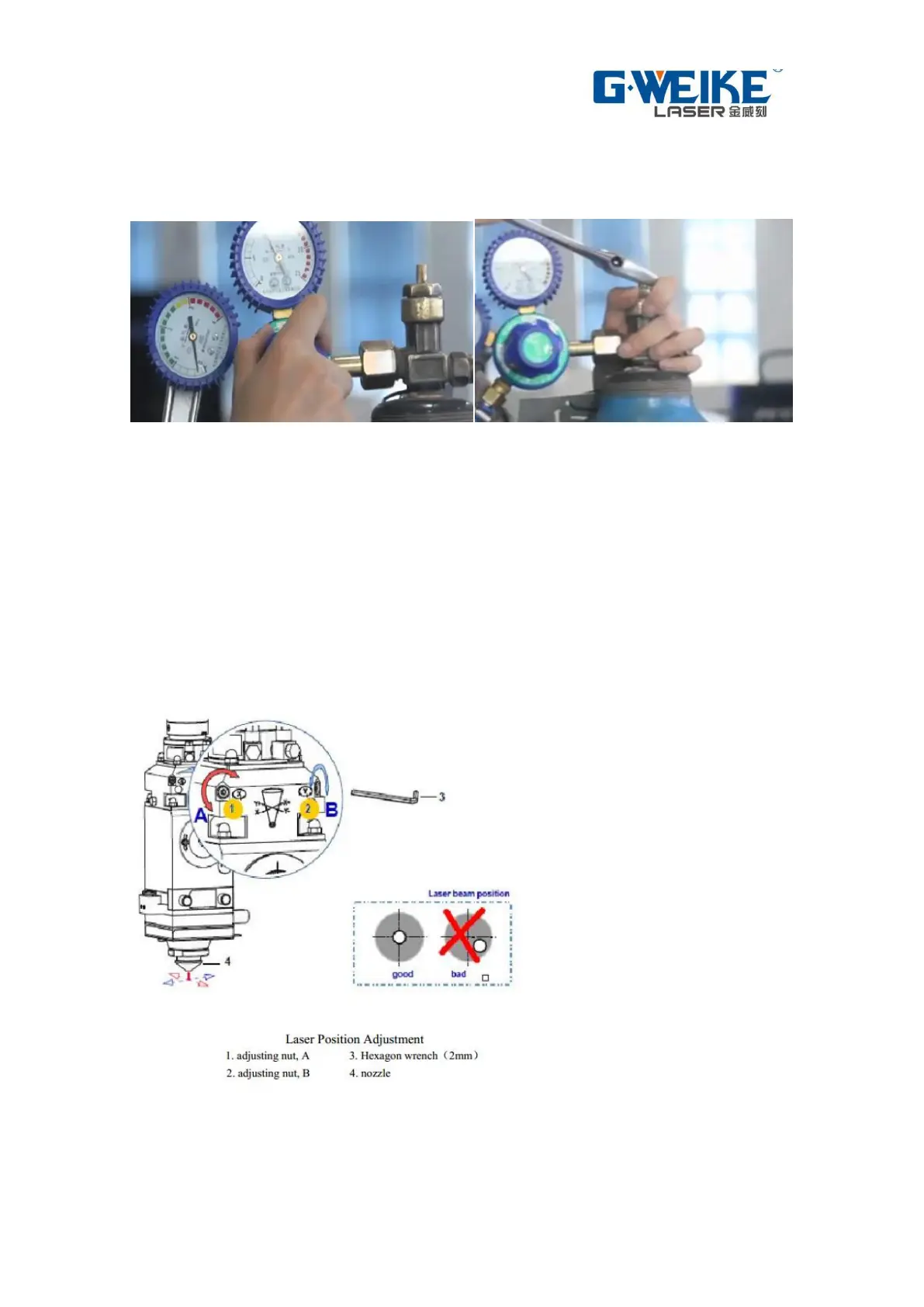 Use two adjusting nut(“1”,”2” on picture5-15) to adjust the beam position