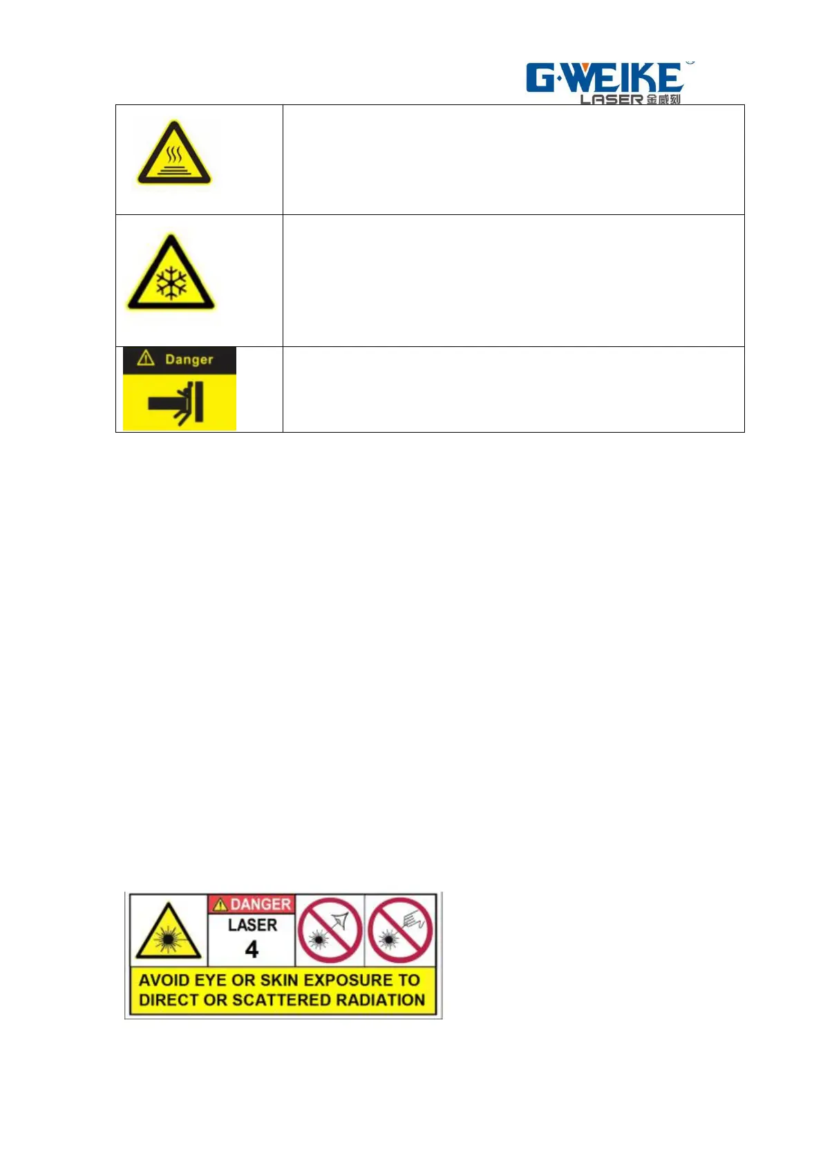 The laser source of this machine is belong to 4 class laser.The main harm