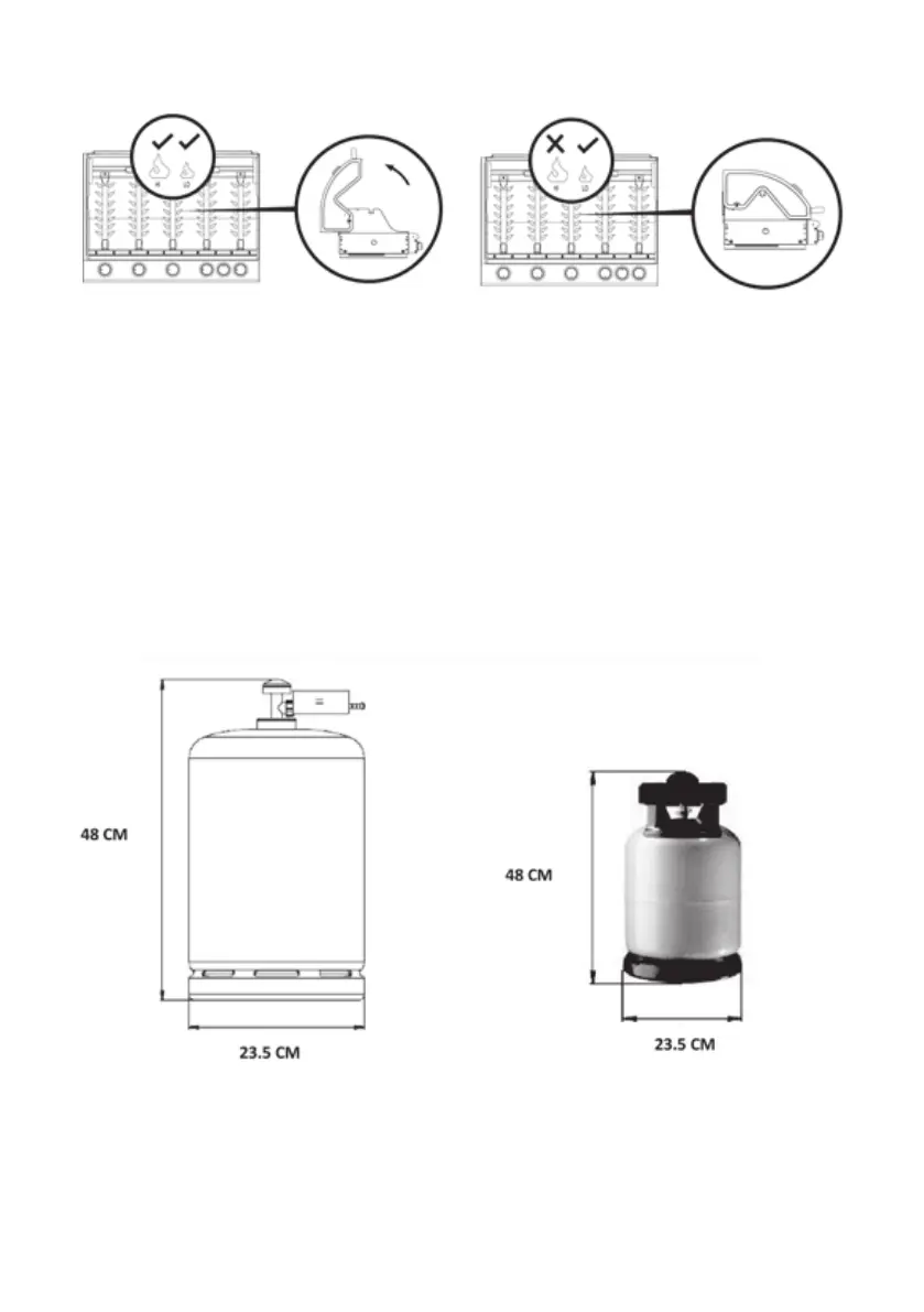 • Gril je možné používat s tlakovými lahvemi o hmotnosti 11kg až 15kg, maximálně 15kg.