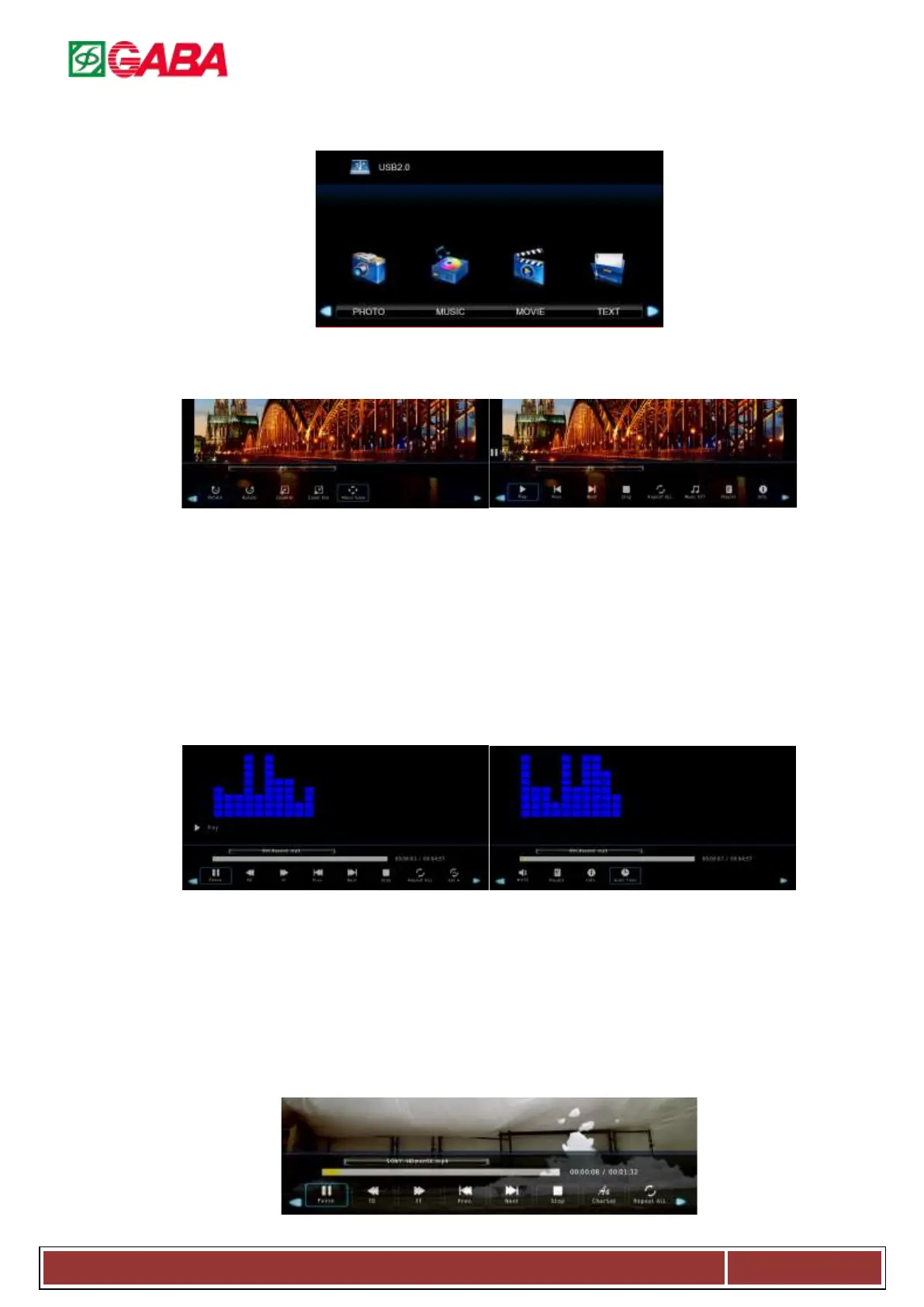 seleccionar el icono Foto / Música / Película / Texto y presione INGRESAR para ingresar a la memoria USB. Para detalles: