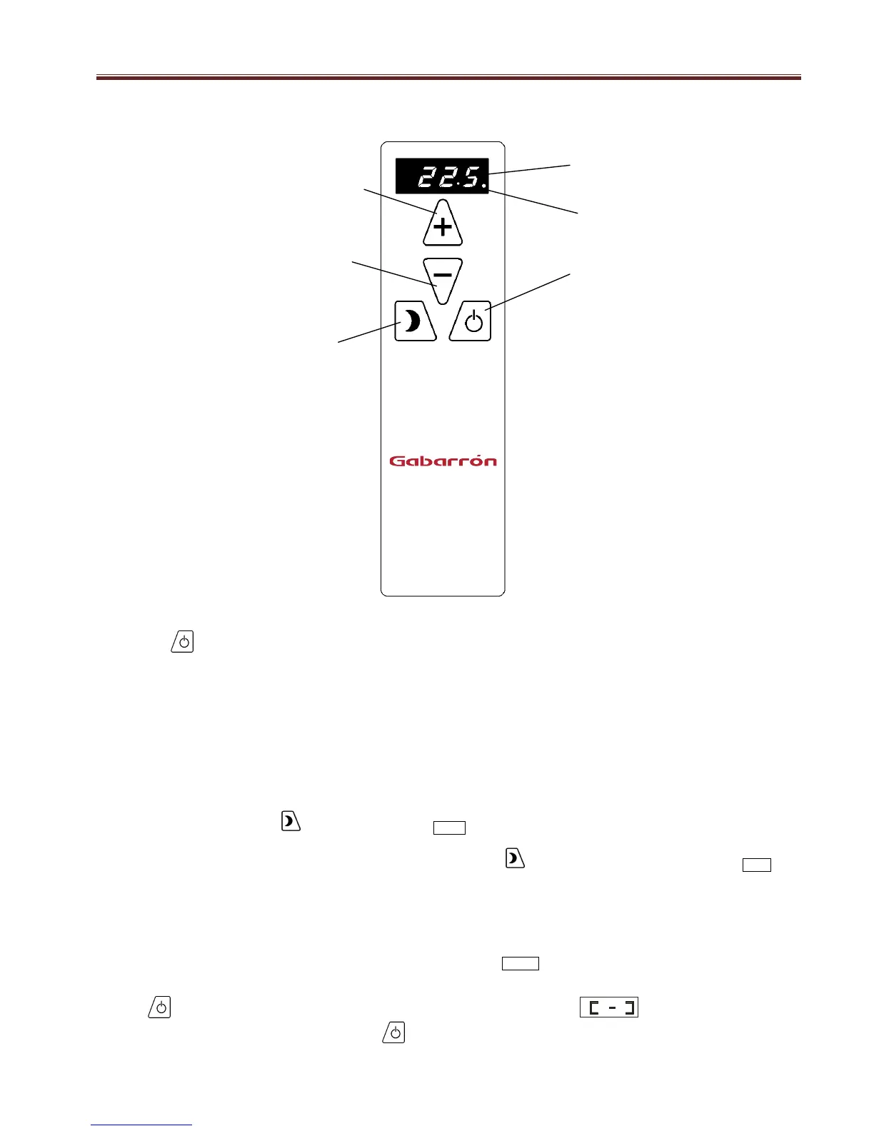 Press the key to start / stop the heater. Once the heater is started the display will show the room temperature. When the heater is stopped a